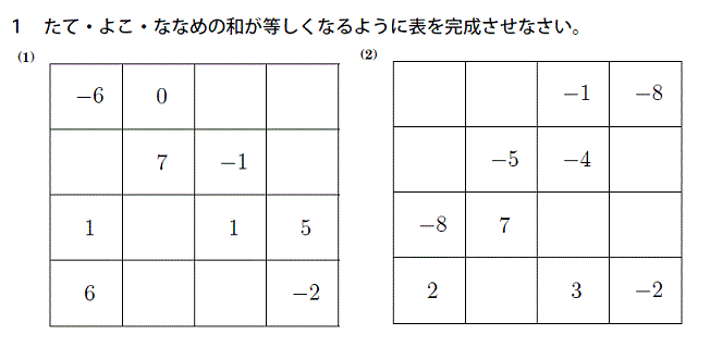 パズルと思って、色々考えてみてください。あまり突き詰めて作らなかったので、パターンがわかれば単純な計算練習と化すはずです。そのころには計算もすらすらできるようになって・・・いるといいですね。