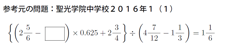 中学受験算数計算のページの問題を、答えと問題の一部の入れ替えをして逆算の問題にしました。