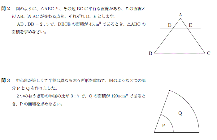 台形については、補助線がポイントです。難易度ちょい上がりますが、いずれも基本的な内容と思います。